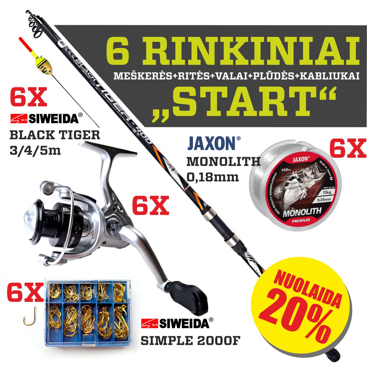 6 PLŪDINĖS rinkiniai „START“.,NUOLAIDA 20%